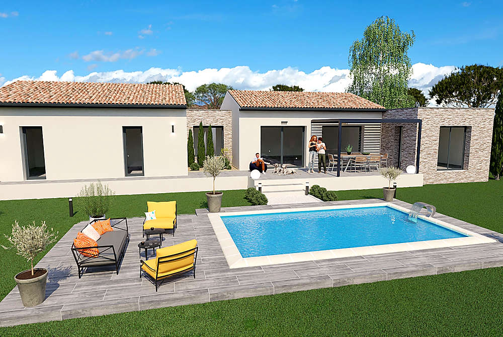 Dans un environnemnt calme, sur la commune de Allan (26), le Groupement d’artisans vous propose ce projet de construction norme RE2020 sur une parcelle de 2065 m².