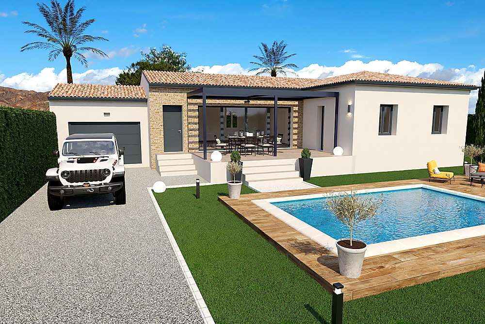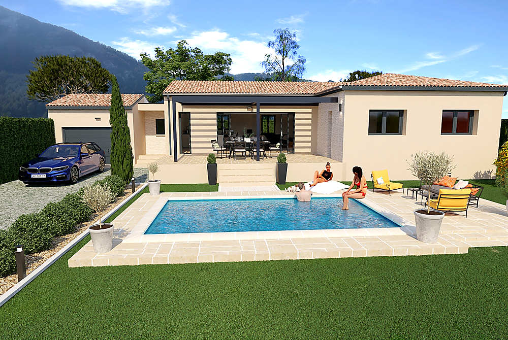 Aux portes de Saint Rémy de Provence dans le magnifique village de Maillane , le Groupement d’artisans vous propose ce projet de construction norme RE2020 sur une parcelle de 540 m² viabilisée.