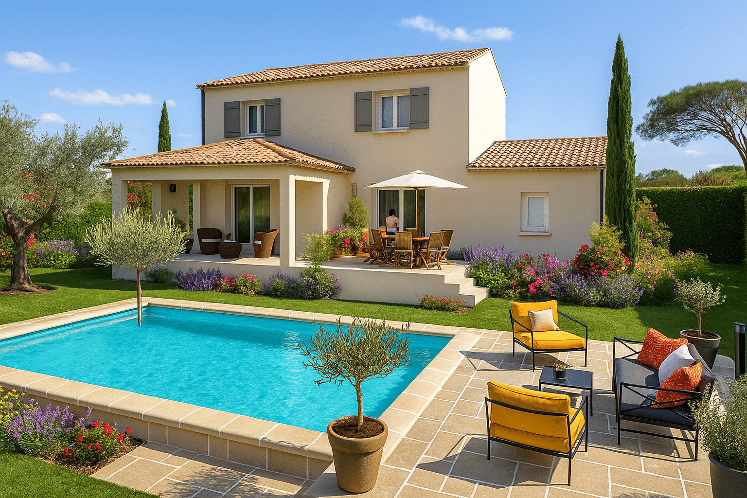 - Climatisation réversible, wc suspendus, volets roulants par domotique, large choix de grands carrelages et faïences, etc... !! Prestations entièrement personnalisables !